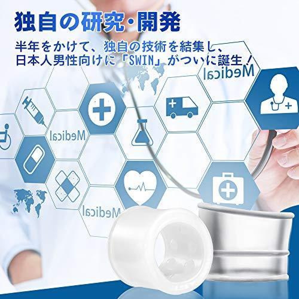 - 【独自開発SWIN】自社設計、独自の技術を結集し、日本人男性向けに最新技術の全てを注ぎ込み、究極進化を遂げた「SWIN」がついに誕生!!包皮を包み込んで亀頭の露出をキープ。装着して包皮の戻りを防止、包皮にむき癖を付けます。包皮を塞き止めることを強くして、ペニスの練習に最適!