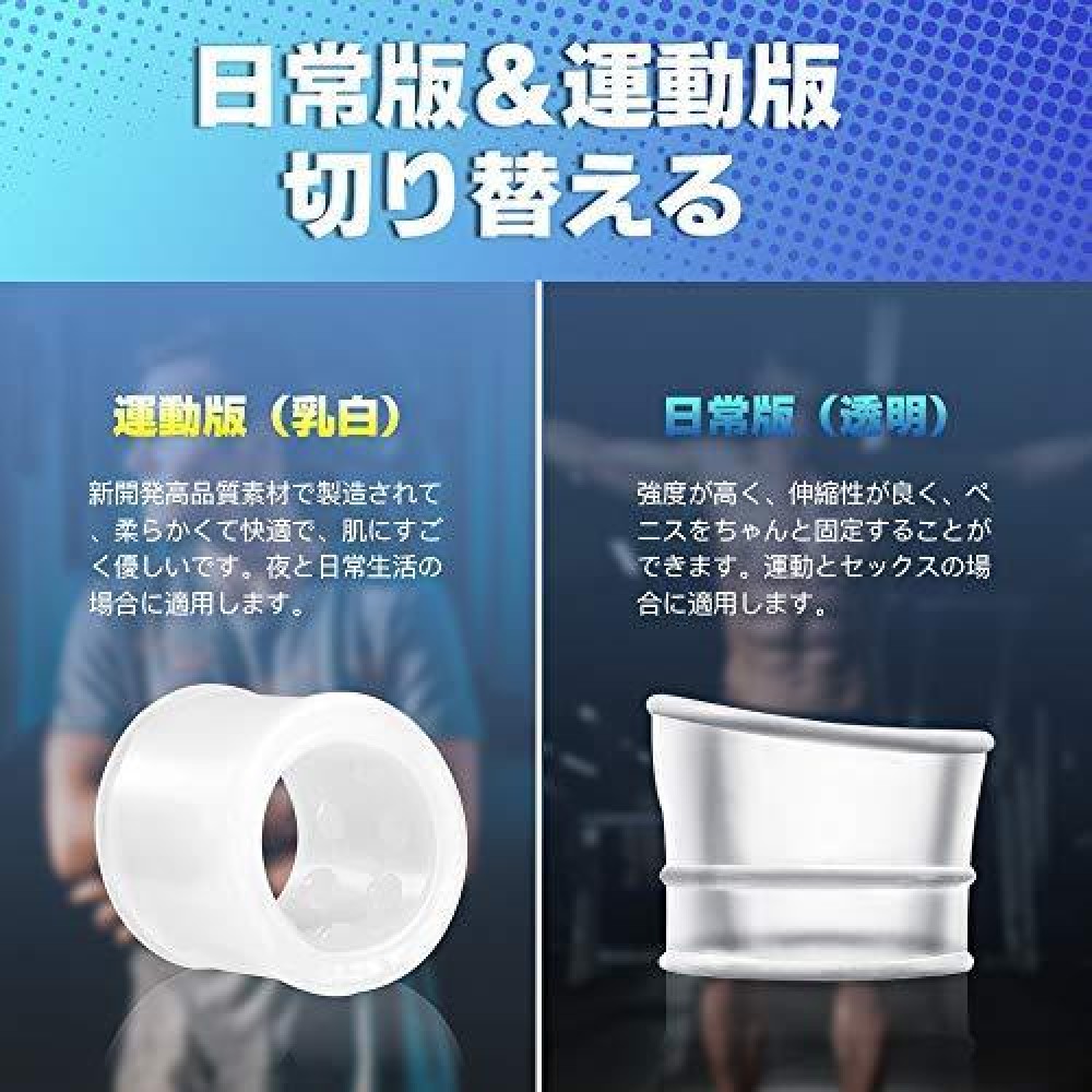 - 【覚醒進化2点セット】日常版はクリアホーン状で抜け落ちにくく、柔らかく日常生活と夜に適用します。運動版は裏側に18個のイボ突起が付いて、運動とセクシーに適用します。場合によって自由に選べます。日々の練習や、ここぞという時など使い方いろいろかつ効果的!