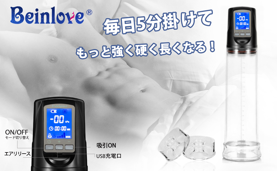 真空陰茎ポンプ 二つモード選択 LED液晶ディスプレイ 超智能 USB充電式