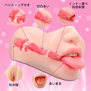 オナホール 舌技再現 リアル フェラと陰交 歯付き 超肉厚 柔軟 貫通型 アダルトグッズ 男性用 ペニスリング付き