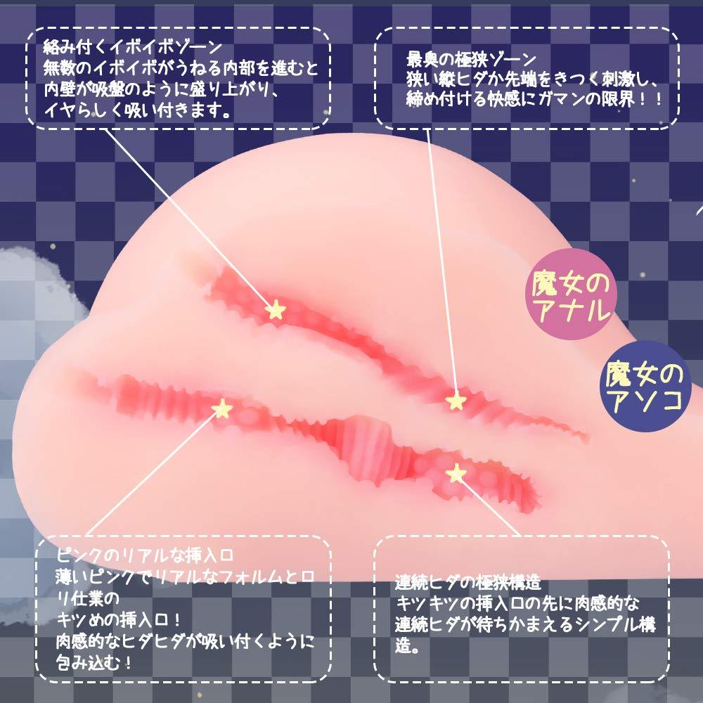 - ✎【りある、進化!】外観はお尻をこちらに突き出すように折り曲げた腰を、そのまま切り取ったような形状。実測値は1950gで、両手持ち可能な大きさです。挿入口のあるお尻側にはシワのよったアナルとすじまん状のワレメが形成されています。愛らしい薄紅の陰花が誘うアナルと勃起する立ちイボが誘惑するピンクなラビア、じっくりたっぷり堪能できるリアルなりあるが、2kgのずっしり重量で2次元魔女の3次元挿入がより現実的なものに!