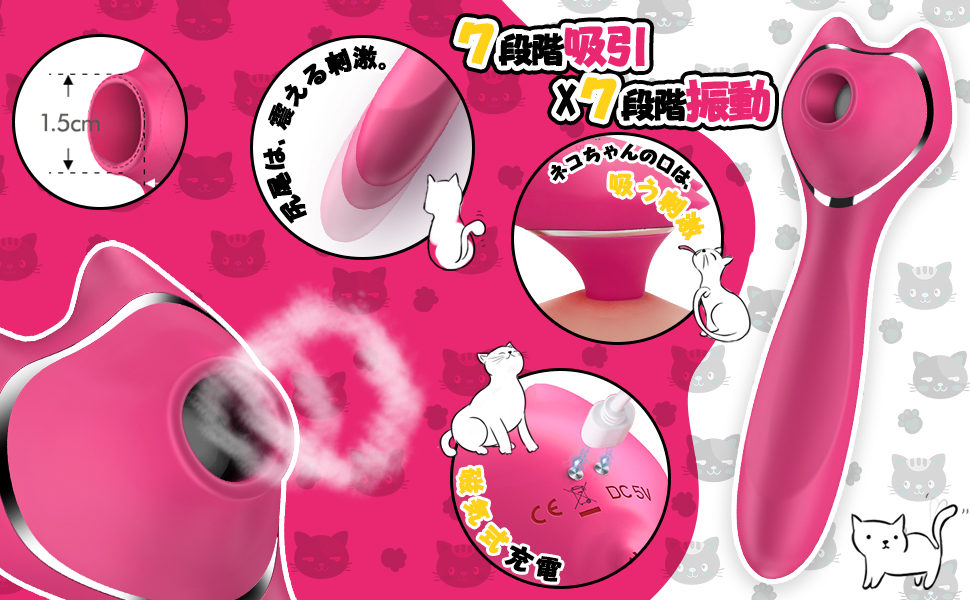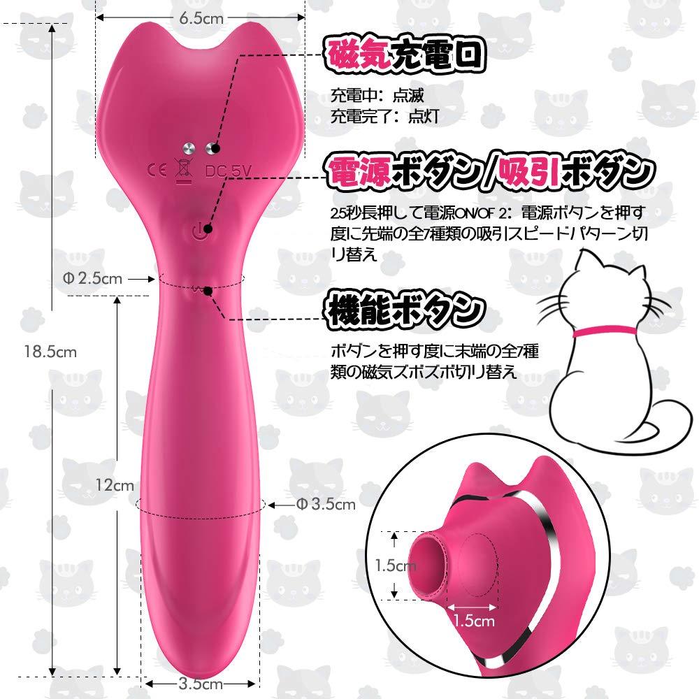 - ω【ニャーコちゃんのおクチ】 ニャーコちゃんのおクチは幅1.5cm深さ2.5cmの控えめサイズです、深さ乳首大きい方もご心配なく、その分クリトリスや乳首などの突起型性感帯をピンポイントで狙いやすく、その刺激を余すところなく伝えるのにピッタリ、吸引パワーは7段階あるので、楽しみたい時圧力波による吸引を繰り出して敏感部分に吸い、刺激や強く吸われるような刺激まで幅広くお楽しみいただけ。
