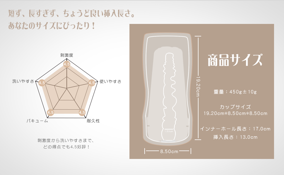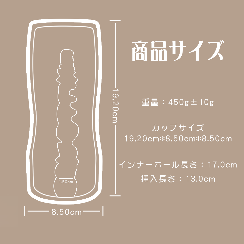 - サイズ:19.2*8.5*8.5cm 挿入長さ:13cm 重量:450g