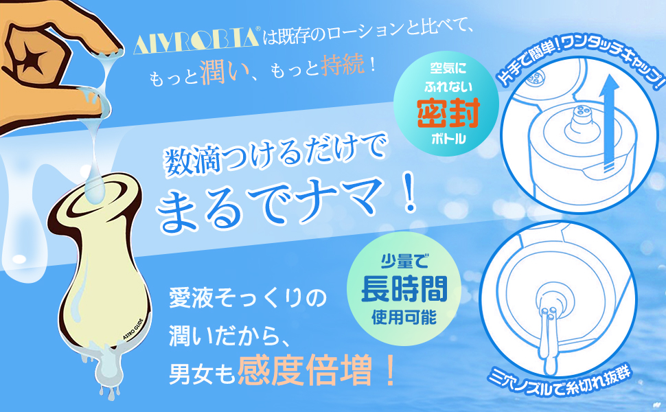 - 【究極のヌルヌル感】乳首や性器に塗るとぬるぬる感が心地よく、ローションというよりは愛液などのエッチな体液に限りなく近い!乾きにくく、滑りの良さを重視したい方はもちろん、プレイ中の摩擦が気になる方にもおすすめです。