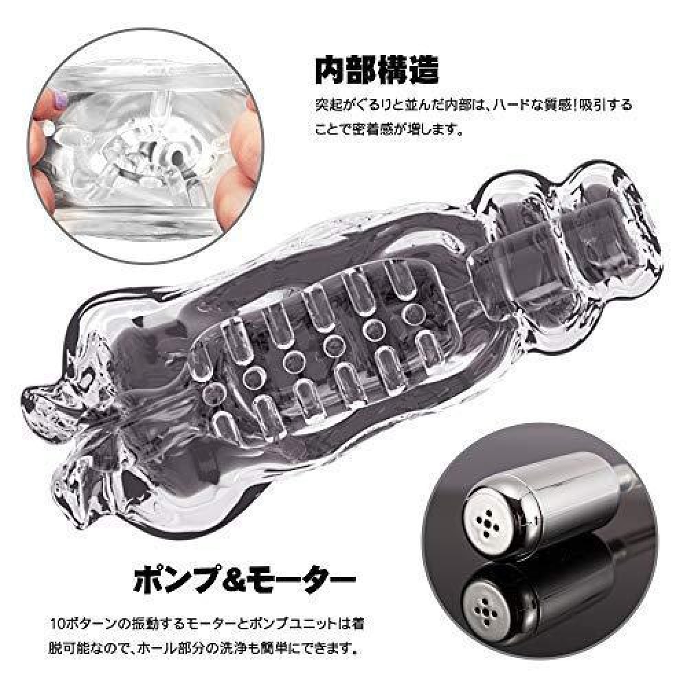 振動・吸引・摩擦電動オナホール 透明オナホ