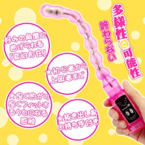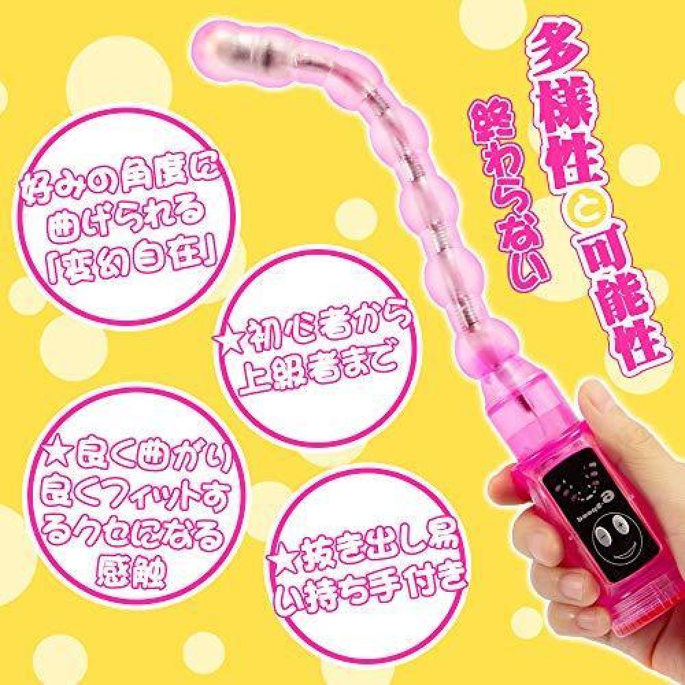 - [使い勝手] なんといってもこのフレキシブルバイブの自由自在な曲げが特徴。柔軟で弾性良いバネが内蔵され、どんな方向、どんな角度にも曲げることができる。アナル開発用がもちろん、前立腺を刺激することで射精より何倍もの快感を得られる全長:26.6cm有効導入長:18cm 直径2.2cm